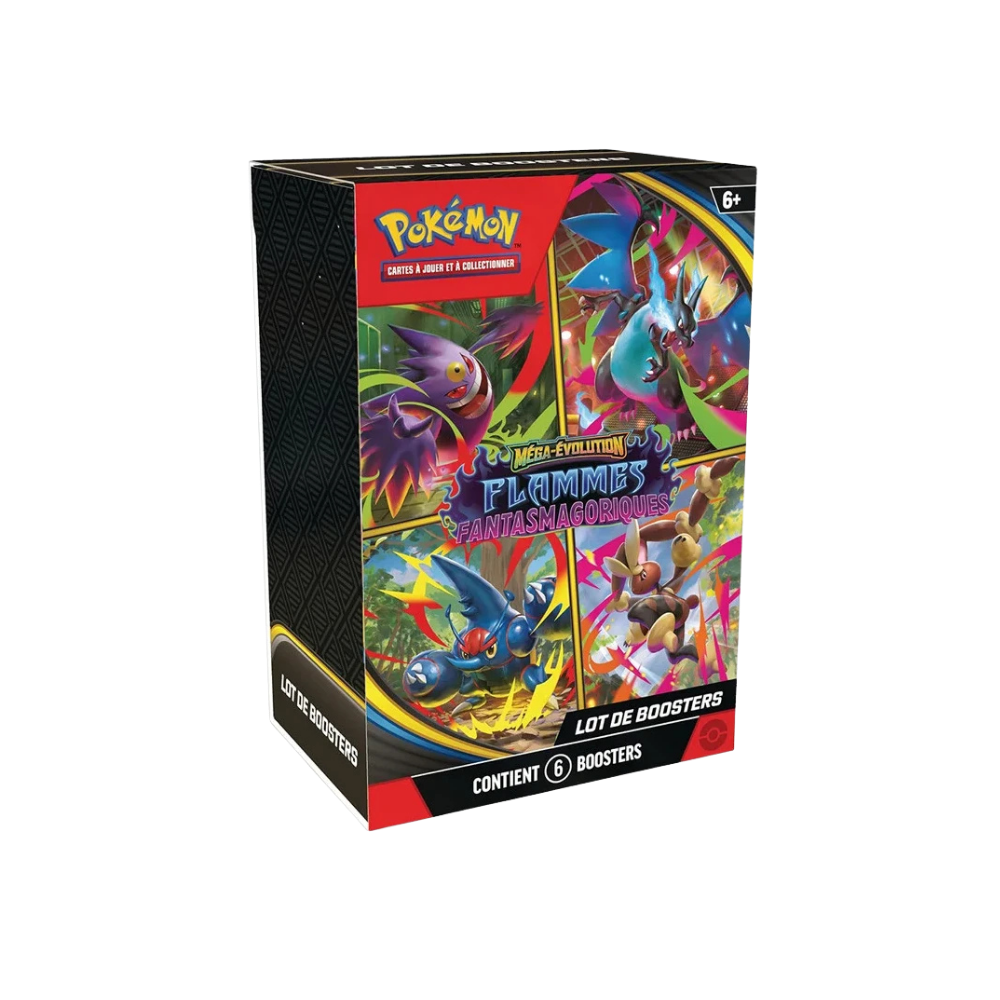 Le Bundle Méga-Évolution: Flammes Fantasmagoriques contient 6 boosters de l’extension